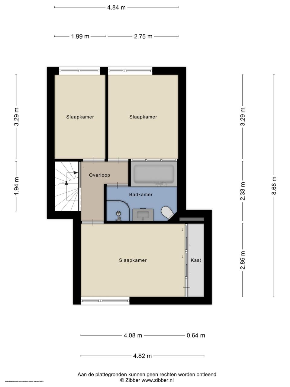Vanaf de overloop zijn drie slaapkamers en de badkamer bereikbaar.