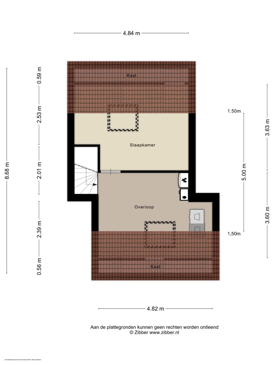 Met een vaste trap bereikbaar. Hier bevindt zich een ruime zolder met wasmachineaansluiting, cv-opstelling en dakraam.