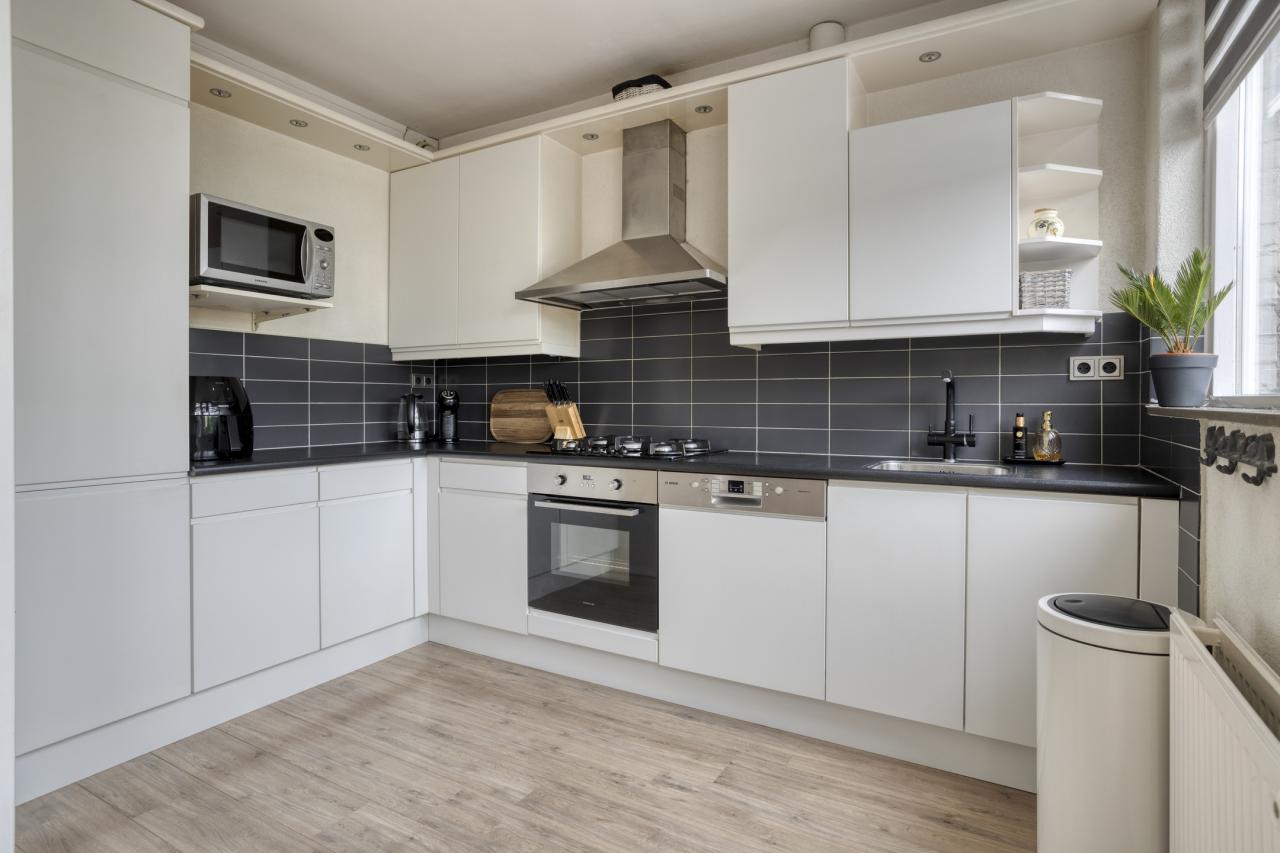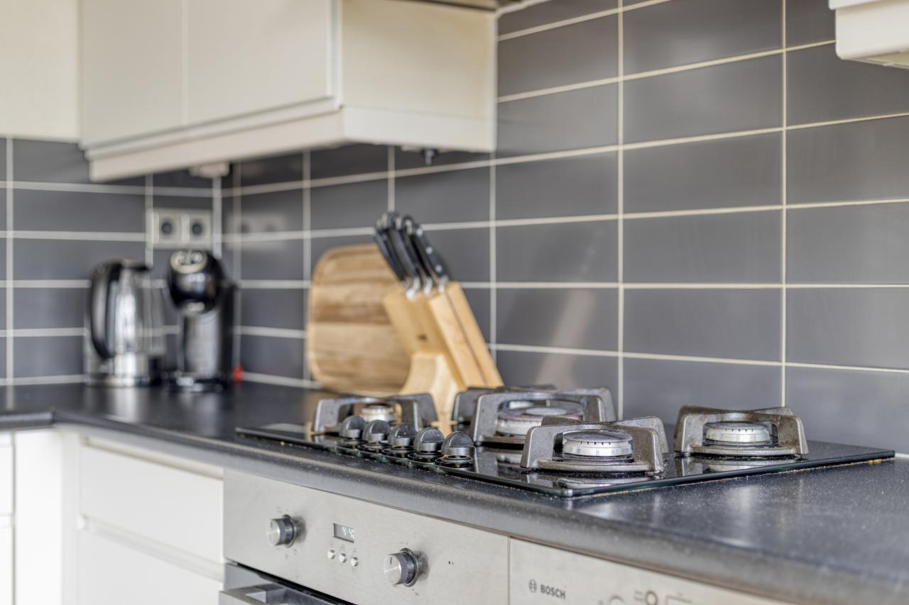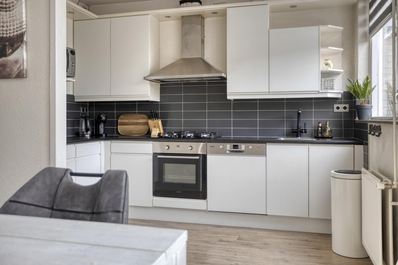 De open keuken is uitgerust met een gaskookplaat, afzuigkap, oven, vaatwasser en koel-vriescombinatie.