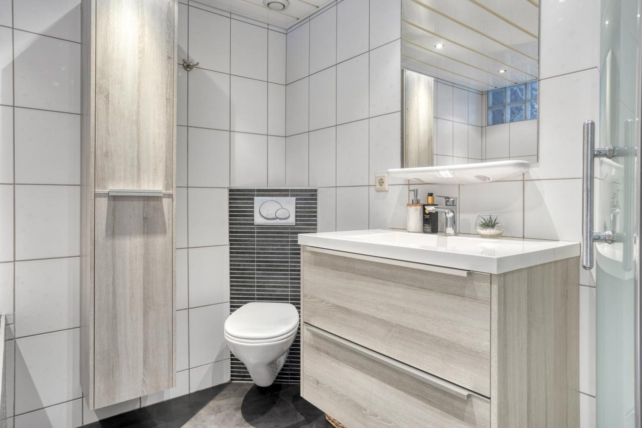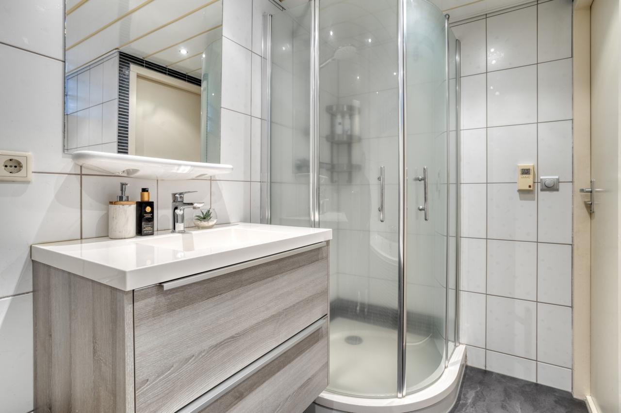 De badkamer is voorzien van ligbad, douche, toilet en wastafel.