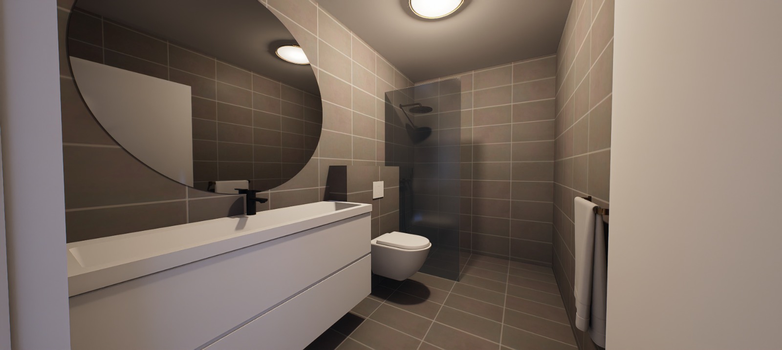 - Turn-key oplevering met vloerafwerking, strakke wanden, keuken en badkamer;